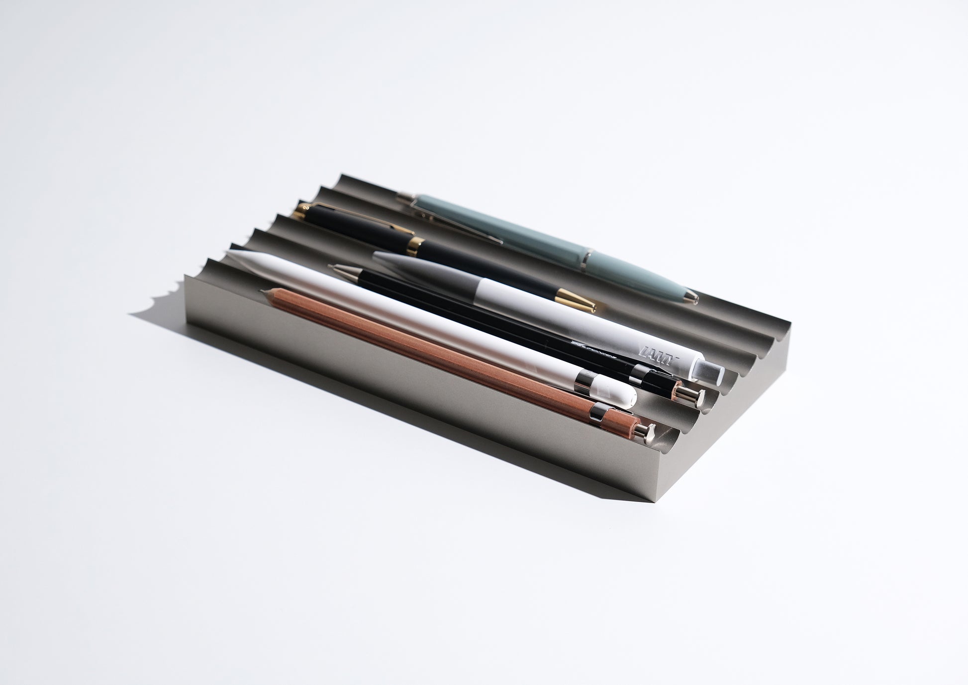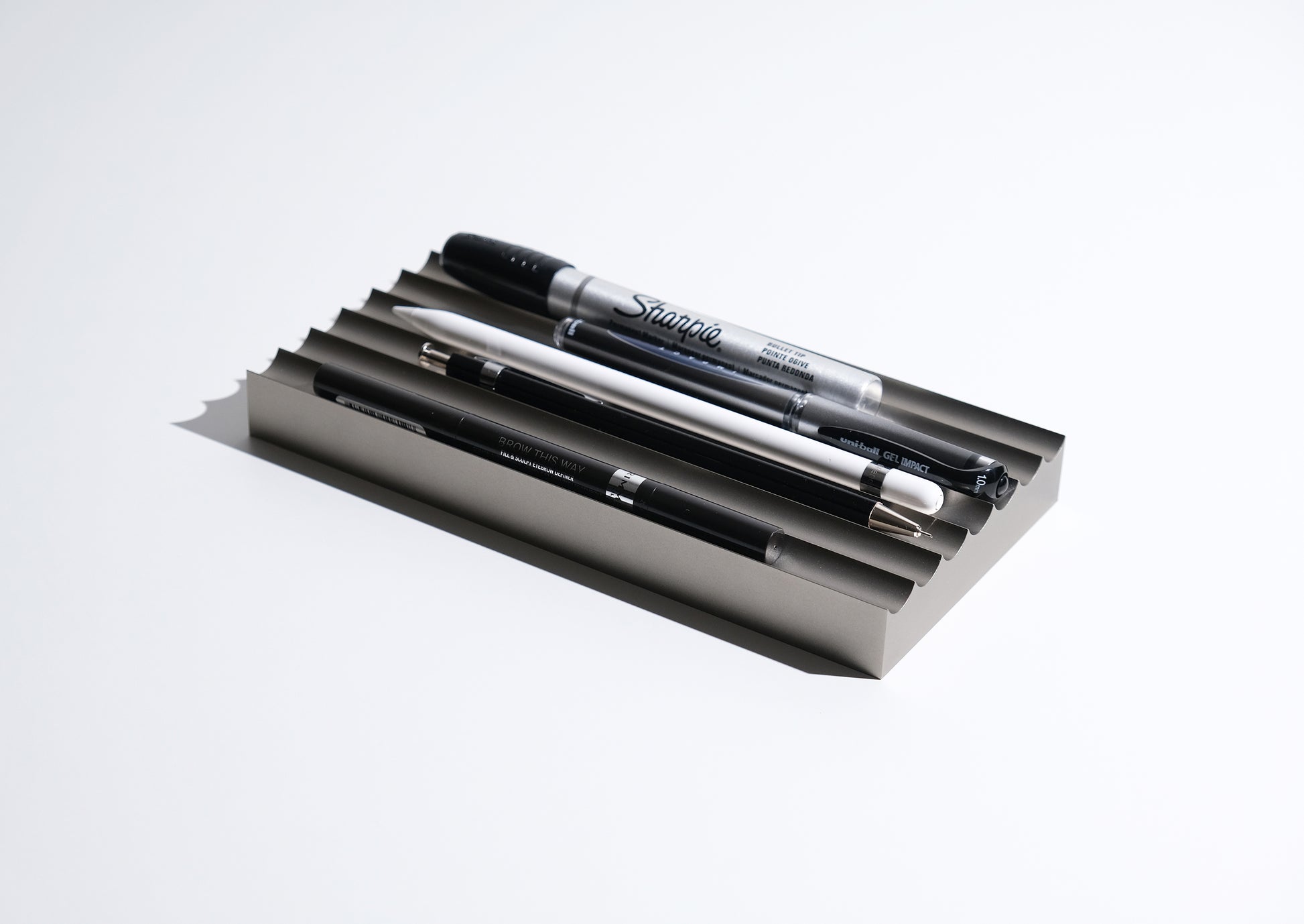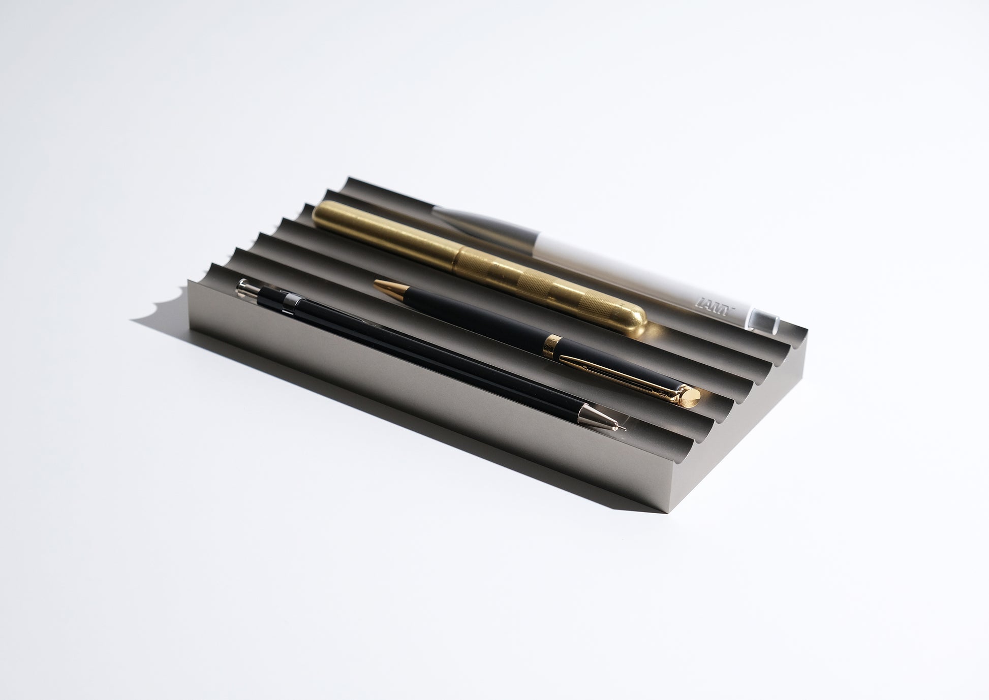 The fluted desk tray is designed to give each of your favourite pens a daily resting place.