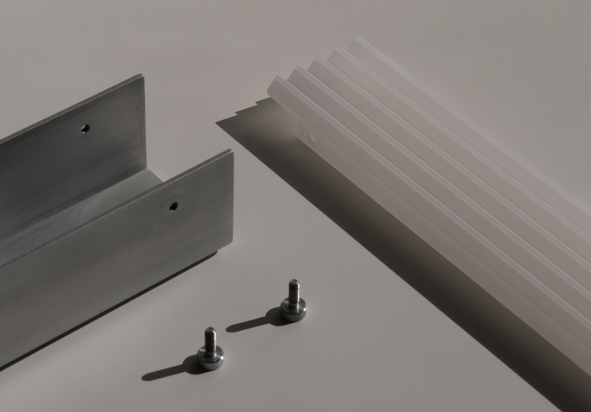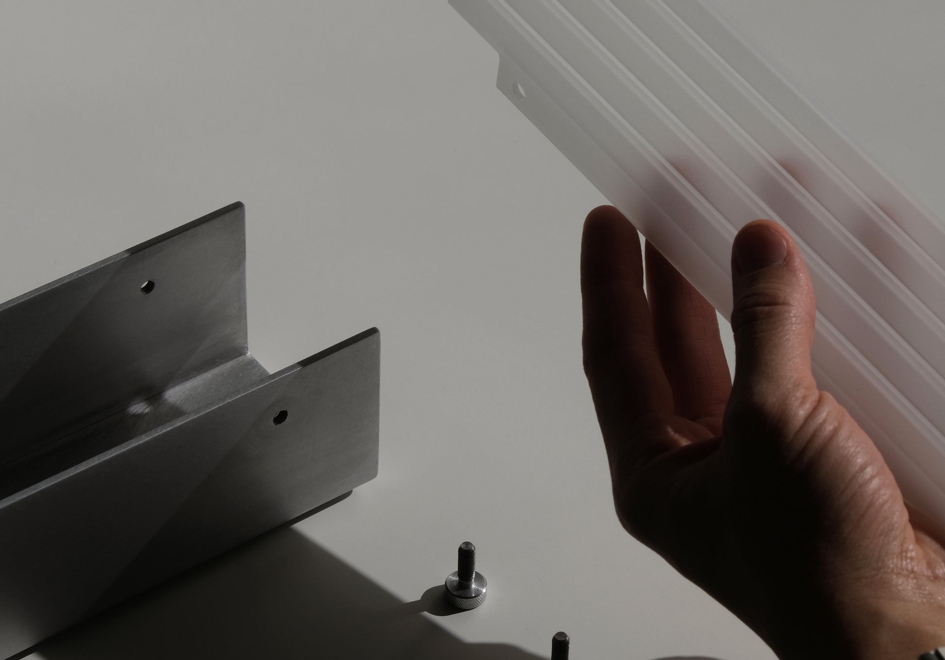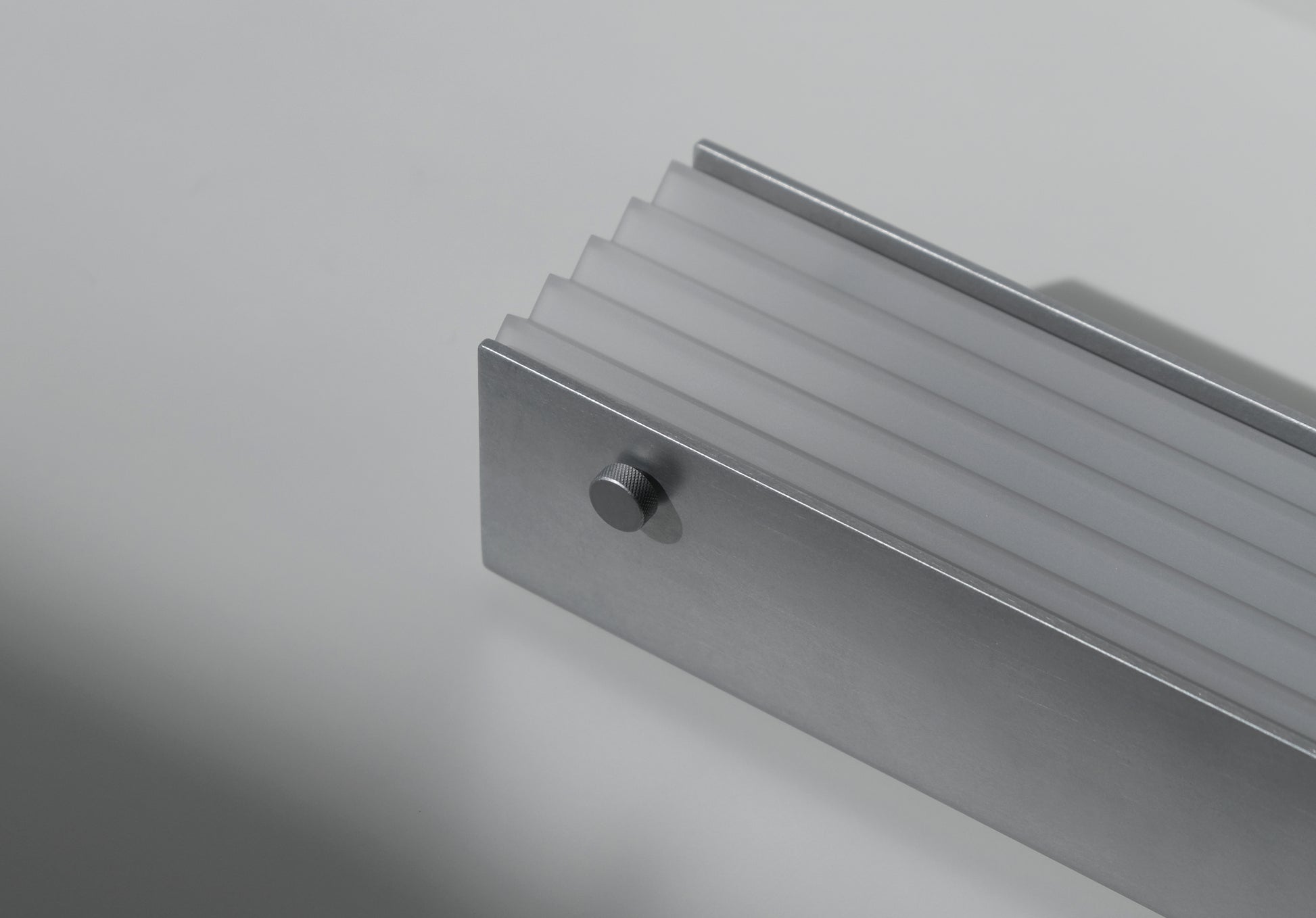 Finish: non-directional matte aluminium, sandblasted acrylic